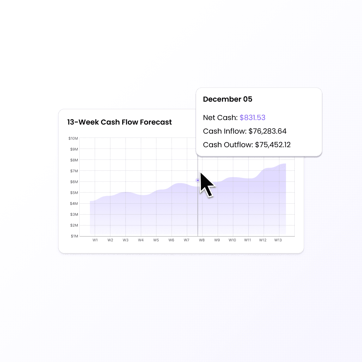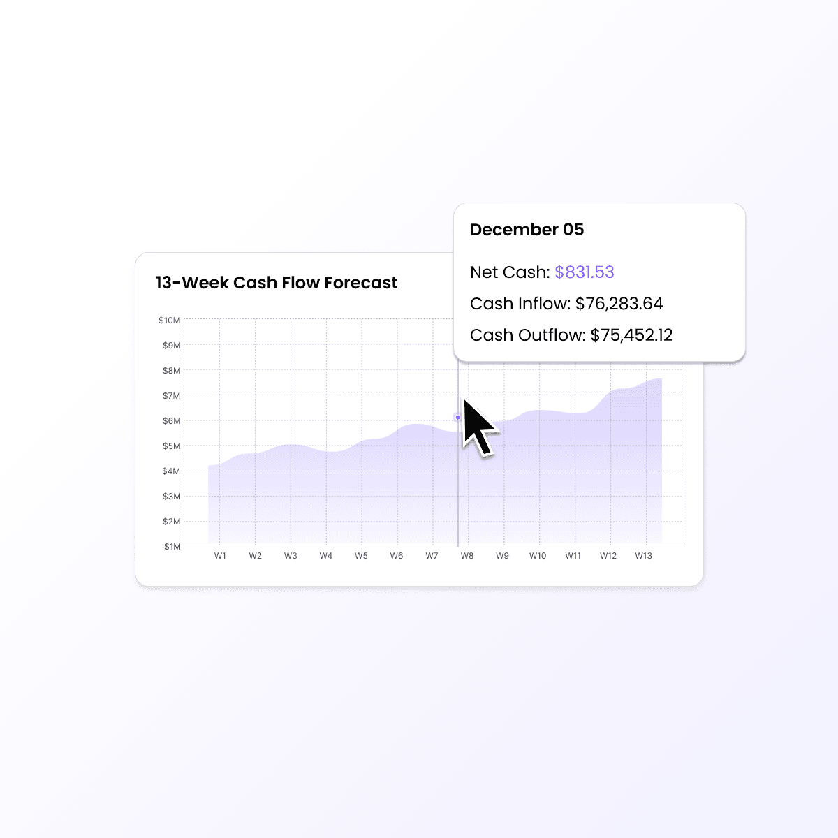 A rolling 13-week forecast built on live data. Identify shortfalls before they happen and stay lender-ready.