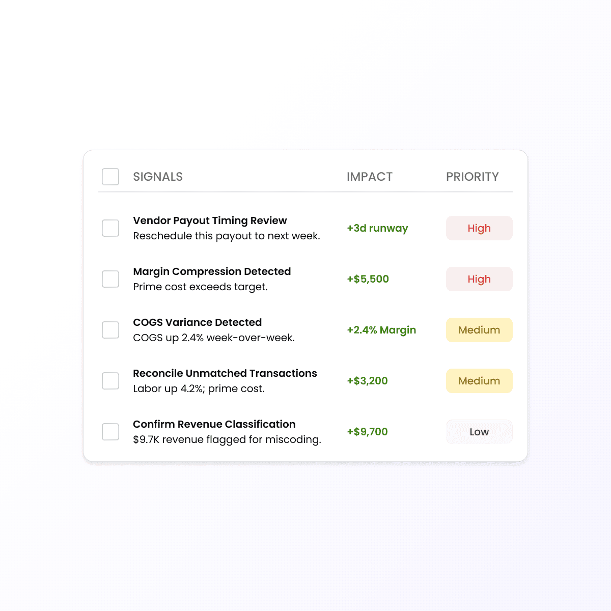 Track exactly where your margin moved every week across COGS, labor and OpEx.