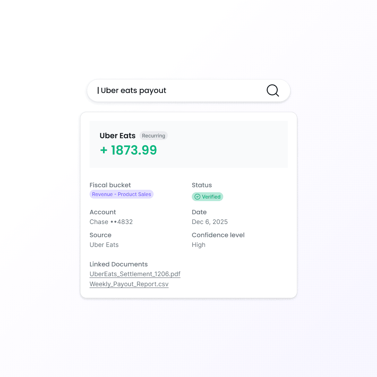 Link every bill and receipt directly to the transaction for total traceability with plain-English AI search.