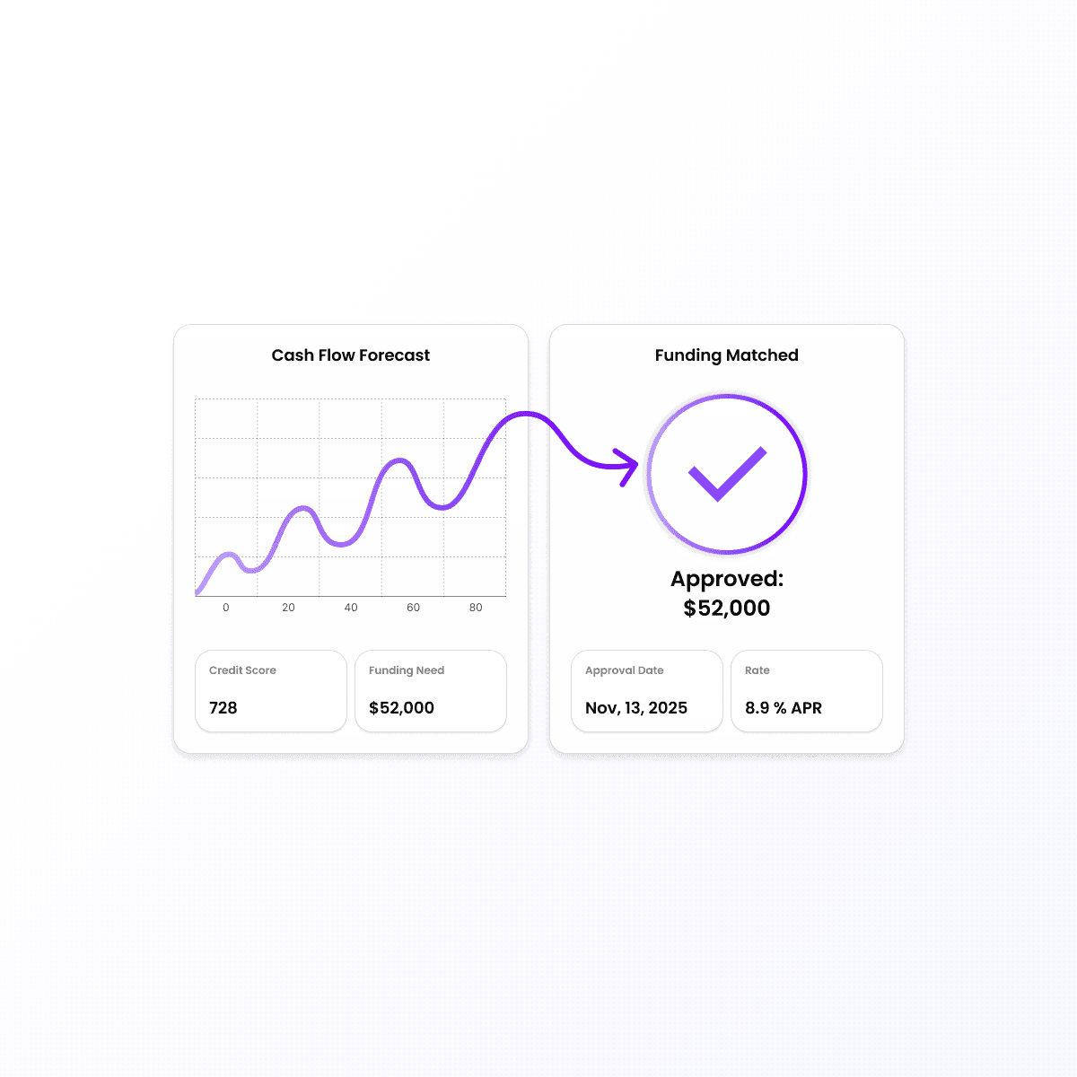 Credit metrics and funding readiness simulations show what qualifies, while lender matching helps businesses get funded faster.